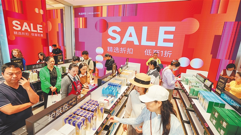 cdf海口国际免税城迎来消费热潮,众多消费者在选购免税商品。海南日报全媒体记者张茂 摄