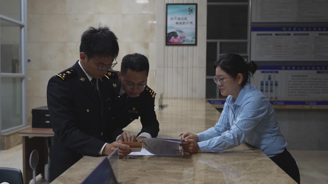 在政务服务中心的海关业务窗口,艾韬和加班的工作人员审单时发现缺少了多份必要的报关材料。经过沟通,出口企业通过线上补传了一部分电子材料。然而,关键的《中华人民共和国农业农村部动植物苗种进(出)口审批表》,却由于企业提供的扫描件模糊不清,需要提供原件进行核实。
