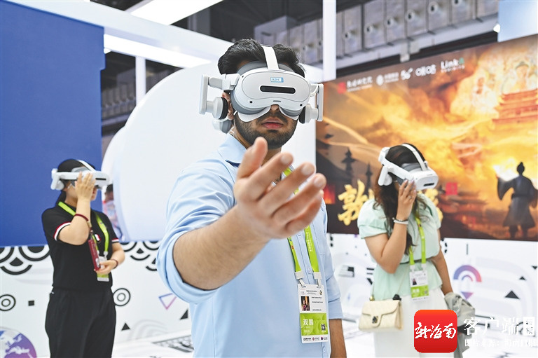 4月13日,参观者在消博会现场体验VR设备。新华社记者 郭程 摄